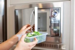 In deze set heeft u het voordeel van een transport/opberg bak die u tevens kunt gebruiken in de magnetron, en wanneer u het bestek eruit haalt, kunt u voedsel raspen op de rasp die in de bak past, waardoor het voedsel in de bak valt. Op deze manier blijft de keuken schoon en georganiseerd. Alle onderdelen zijn vaatwasmachinebestendig.