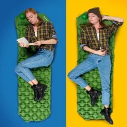 Een comfortabel en compact slaapmatje die makkelijk in je rugzak past? Blaas de TRVLMORE slaapmat in 2 minuten op met de geïntegreerde voetpomp en kruip in bed! Heerlijk comfortabel en gemaakt van zacht en stevig 40D nylon. De slaapmat is 6 cm dik en is afgewerkt met een vochtbestendige TPU coating. Het hoofdkussen heeft een ideale hoogte voor je nek. Het honingraat ontwerp houdt je lichaamswarmte goed vast. Zo kun je er de volgende dag weer helemaal tegenaan!